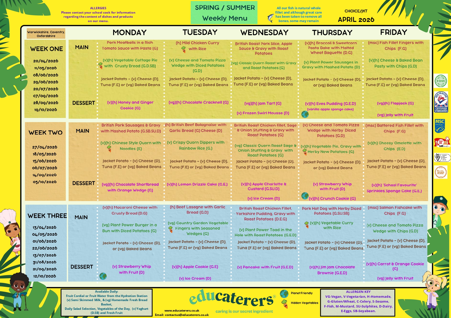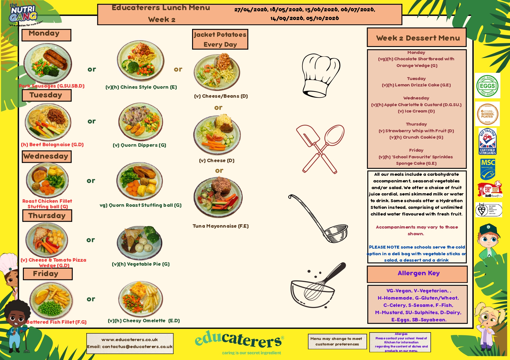 Our Spring Summer Menu starts on Monday 13th April 2026 - It will be week 3